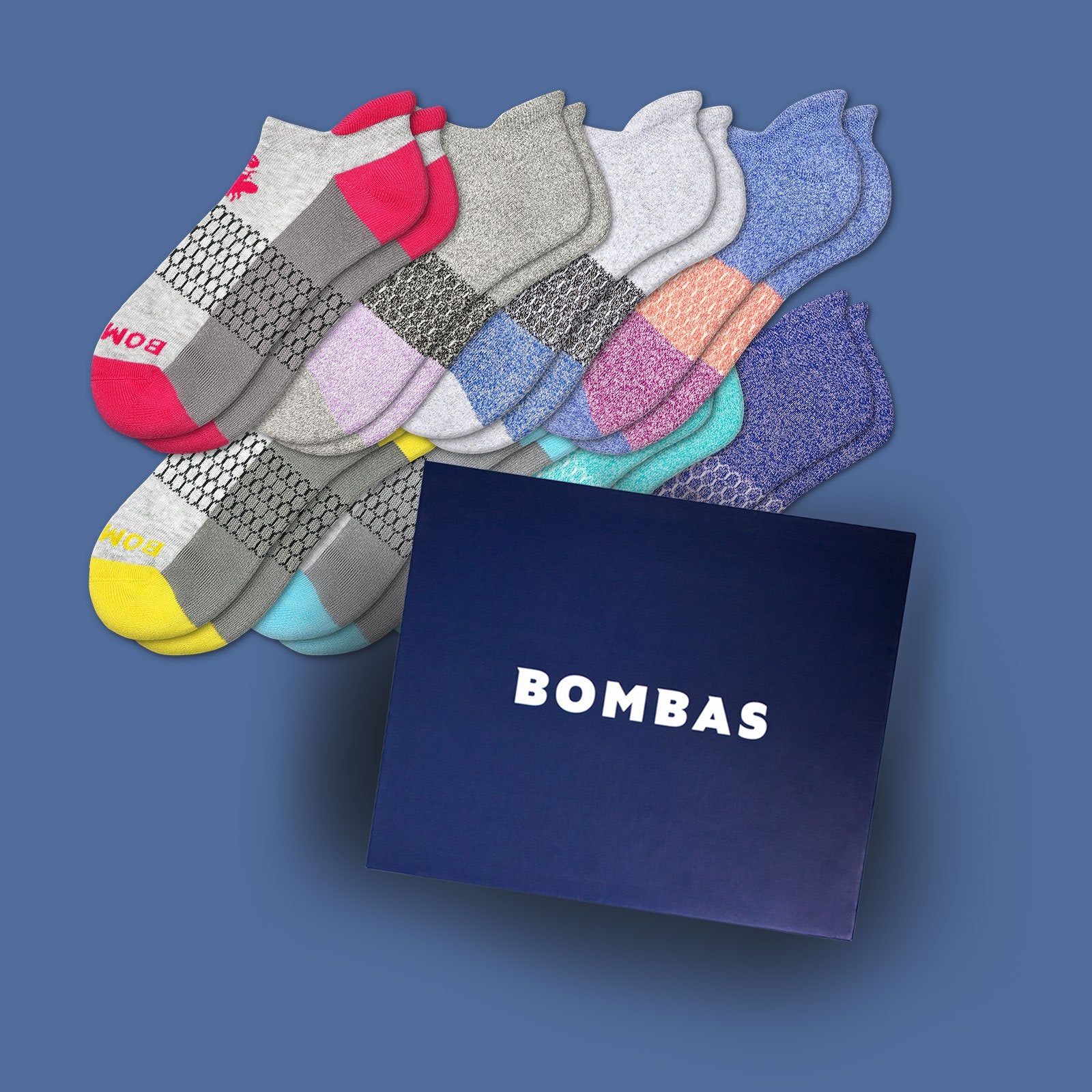 Eight pairs of brand new Bombas socks in a brand new Bombas gift box that will make whoever is on the receiving end of this gift a brand new fan of you.