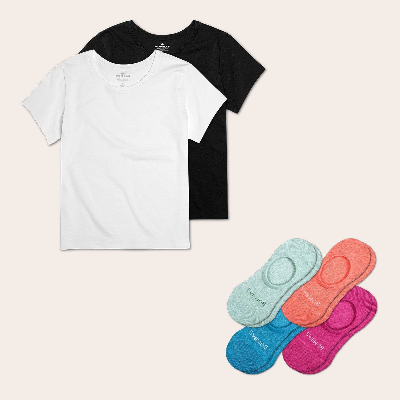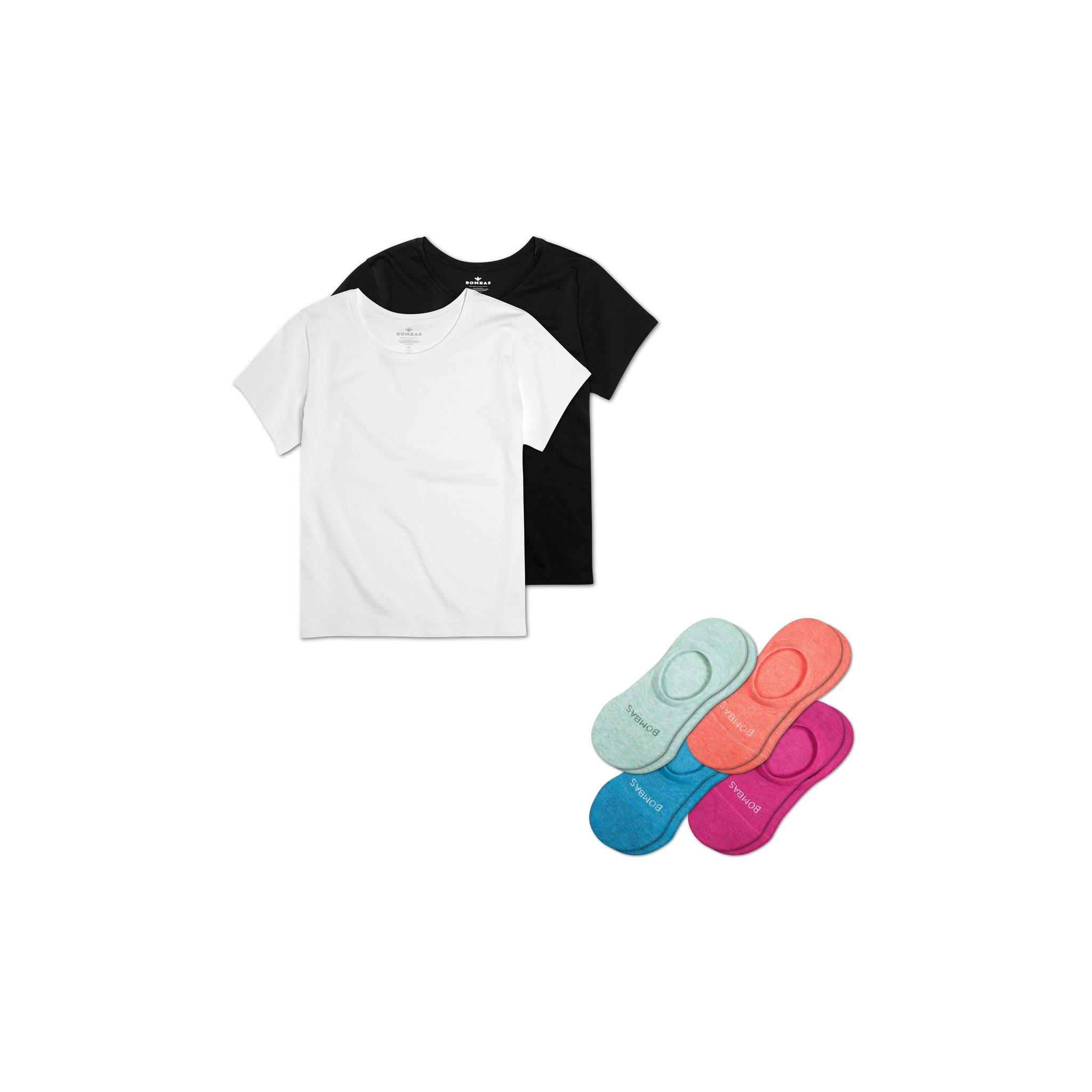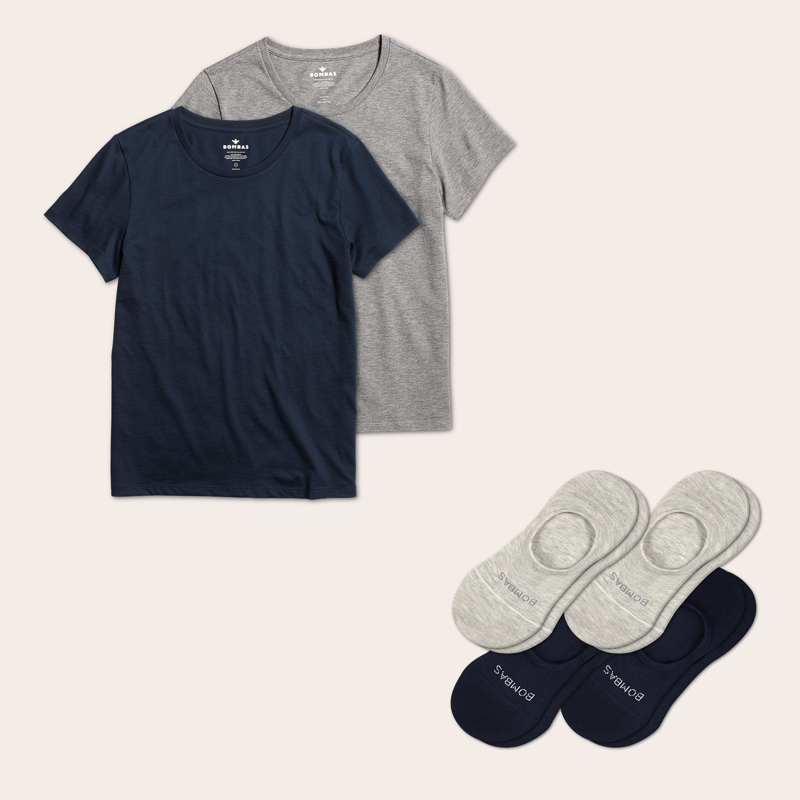 Two different kinds of thoughtfully designed Bombas products in one pack. Prepare for your daily comfort levels to go way, way up. And for each sock and shirt purchased, one will be donated to someone in need. One purchased = one donated, always and forever.