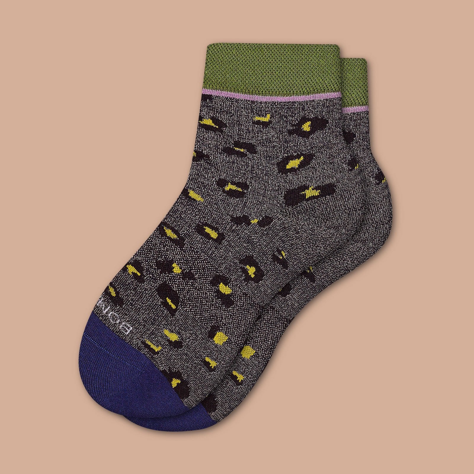 These fiercely comfortable quarter socks provide a supportive fit in every element, with some extra flair. Higher than Bombas ankles, and lower than a Bombas calfs, these sparkly statement socks are perfect for relaxing hibernation, or going out into the wild.