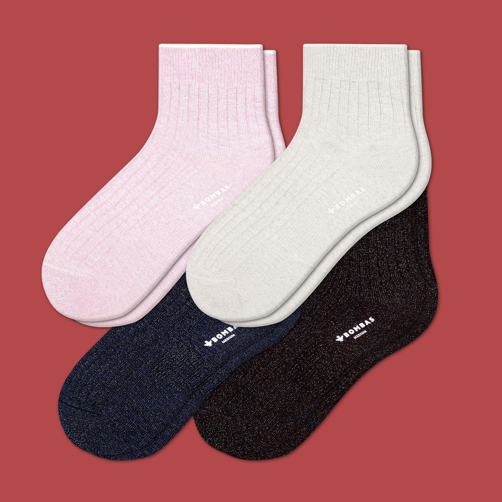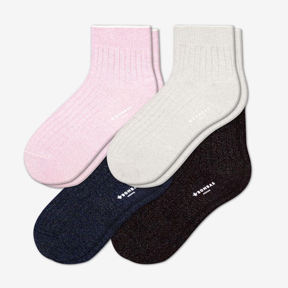 Women's Lightweight Sparkle Ribbed Quarter Sock 4-Pack