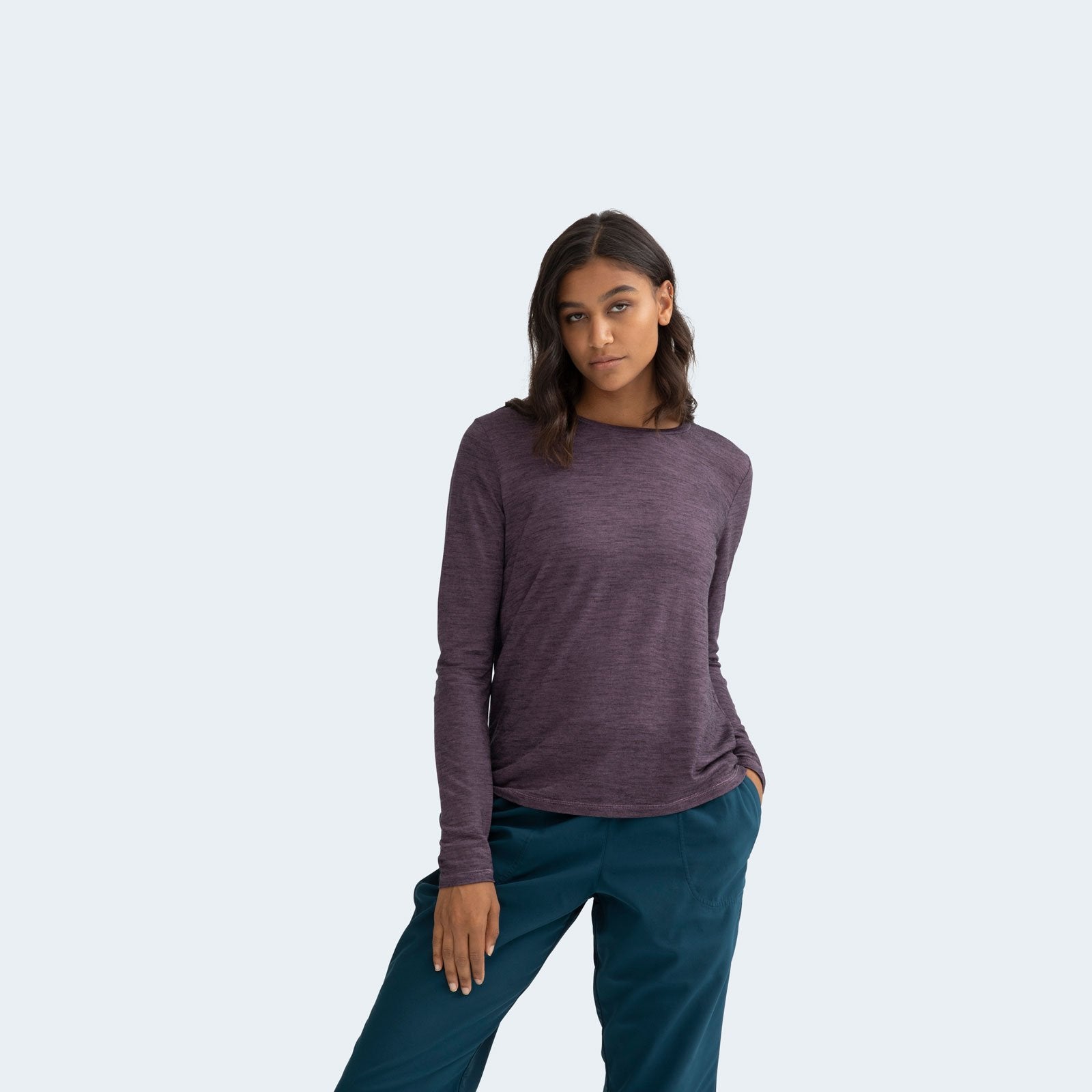 Meet merino wool: it's a naturally soft, moisture-wicking, and thermoregulating fiber that's guaranteed to keep you comfortable in every situation. Even better, our merino wool shirts are blended with Tencel, a fiber known for its cooling, quick-drying, and smooth-against-the-skin properties. It's the dreamiest combo in your closet.