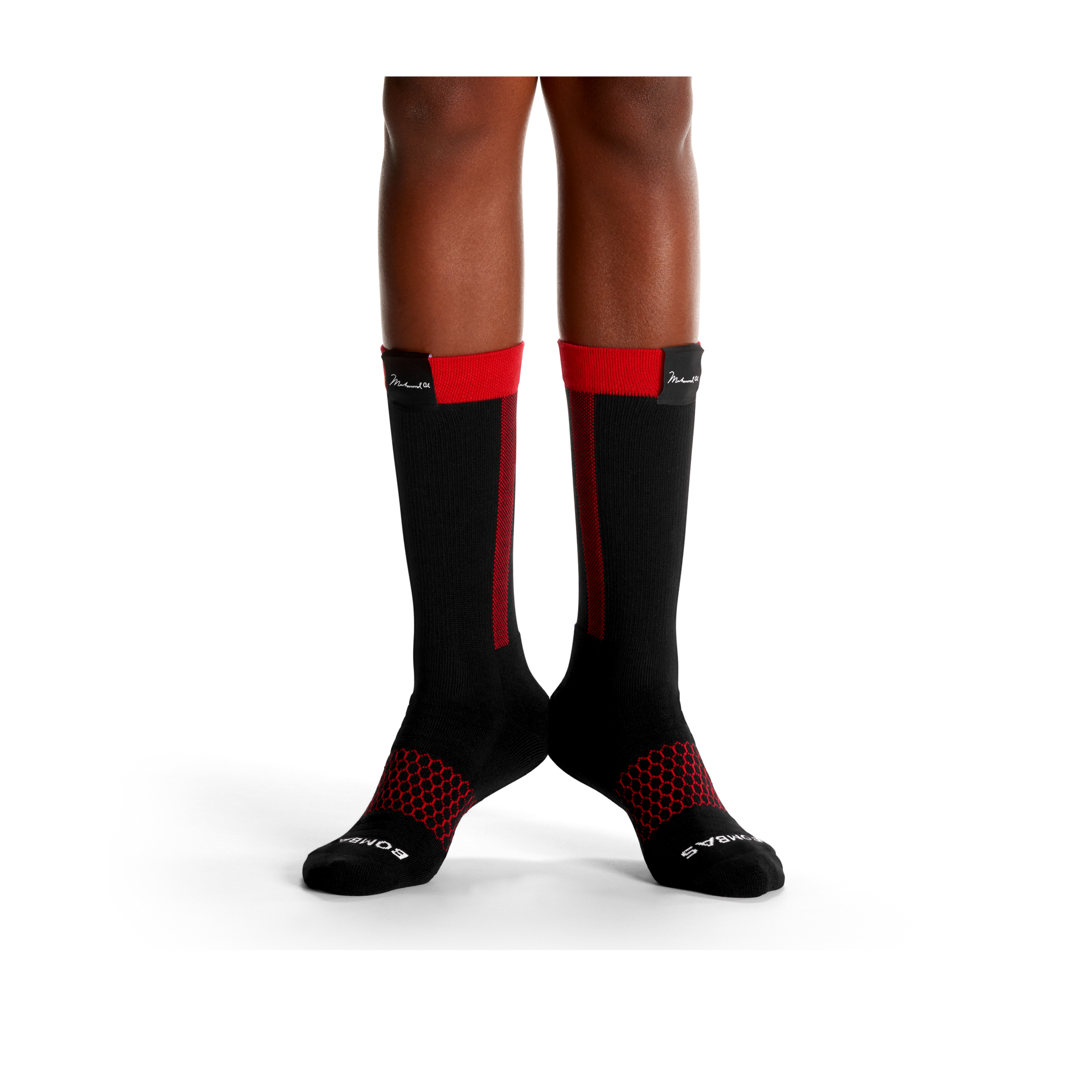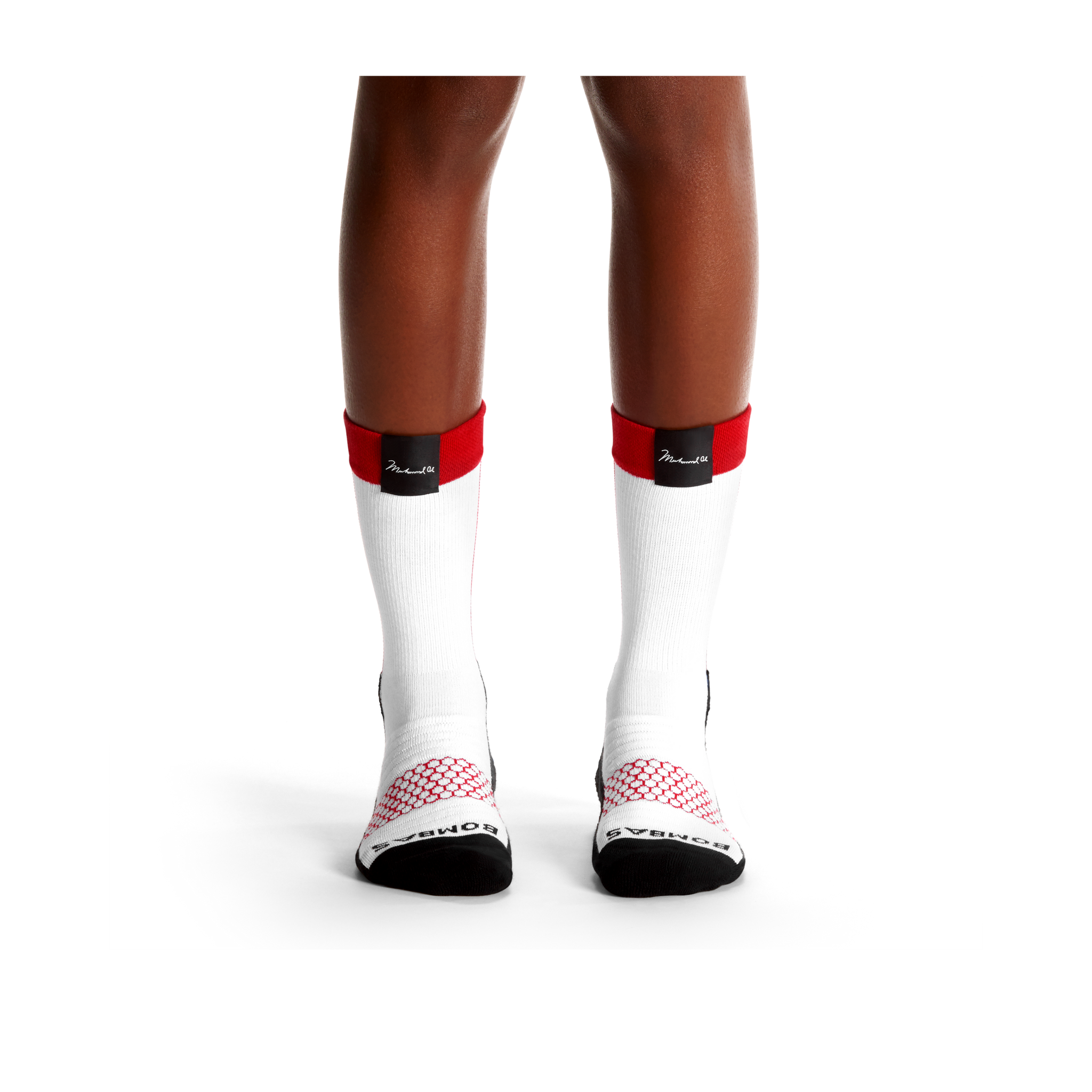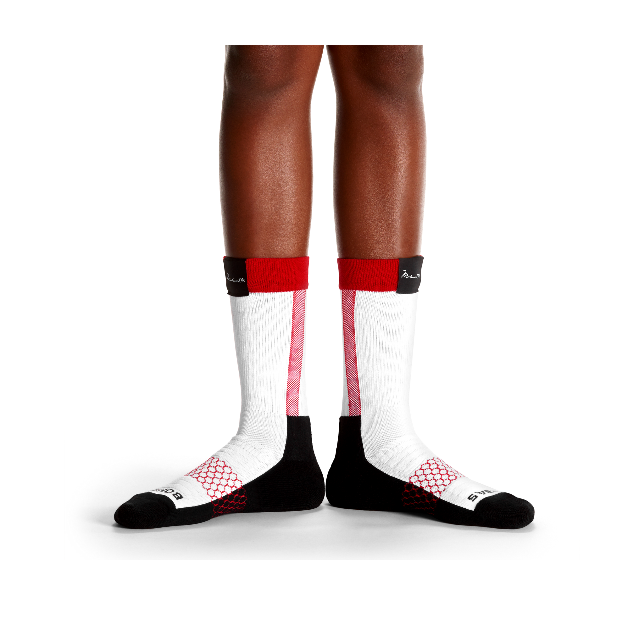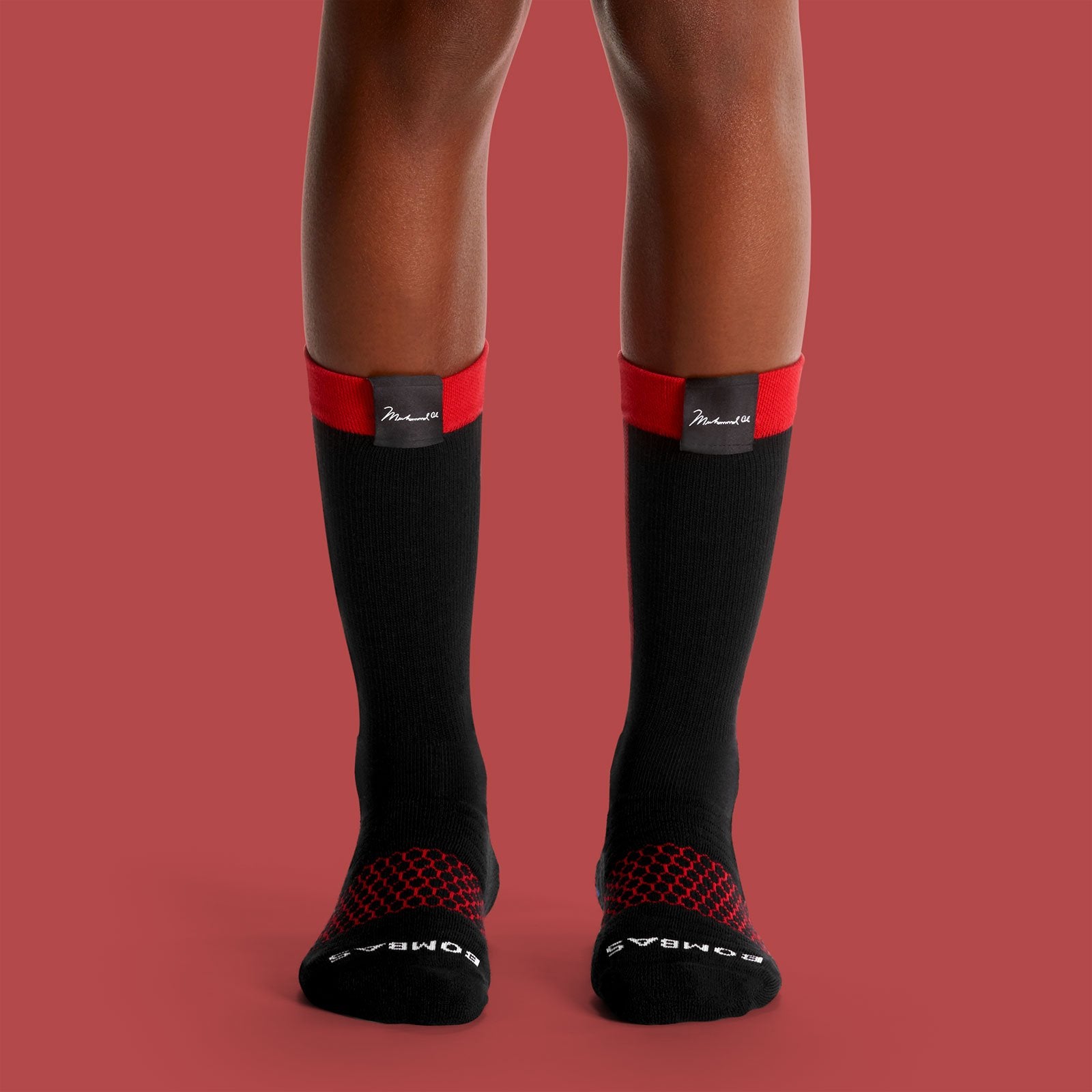 Introducing Muhammad Ali x Bombas, a collection of socks inspired by the man in and out of the ring. For every pair we sell, we'll donate a pair of socks to someone in need. These Championship Socks were designed to resemble the trunks Ali wore when he fought in his biggest fights.