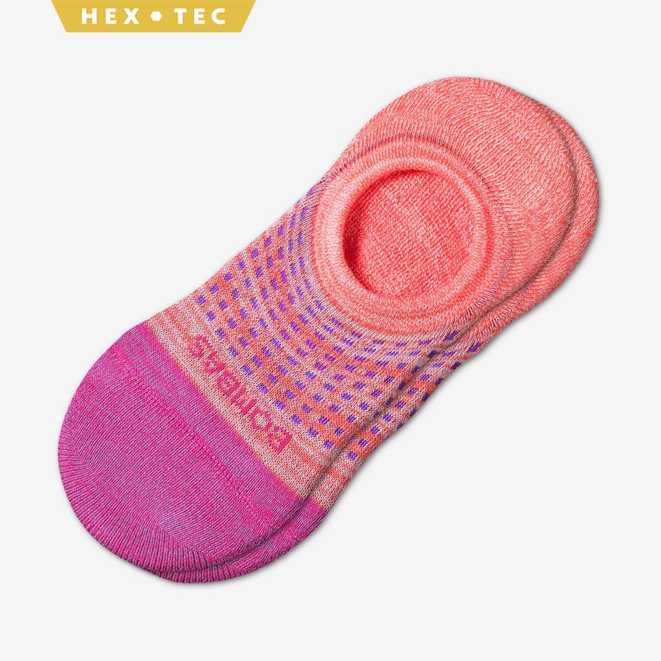 People love working out in Bombas No Show socks, since they conform to the shape of your foot and use special silicone strips, they never slip down no matter how many far into your run, ride or game you are.