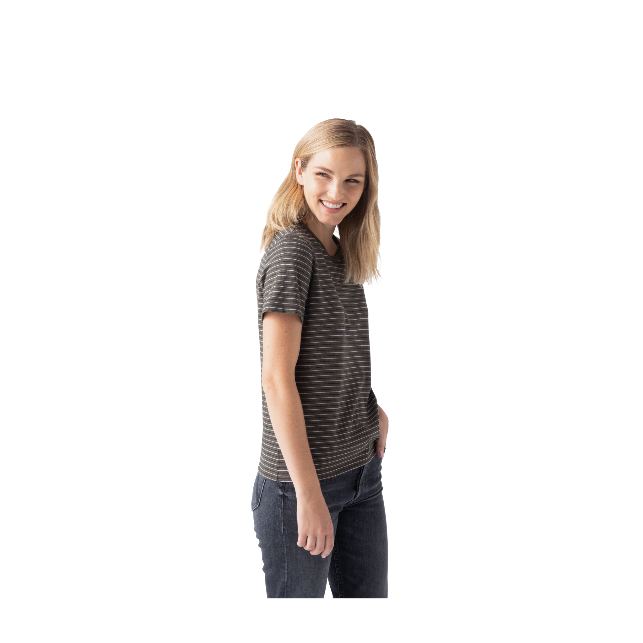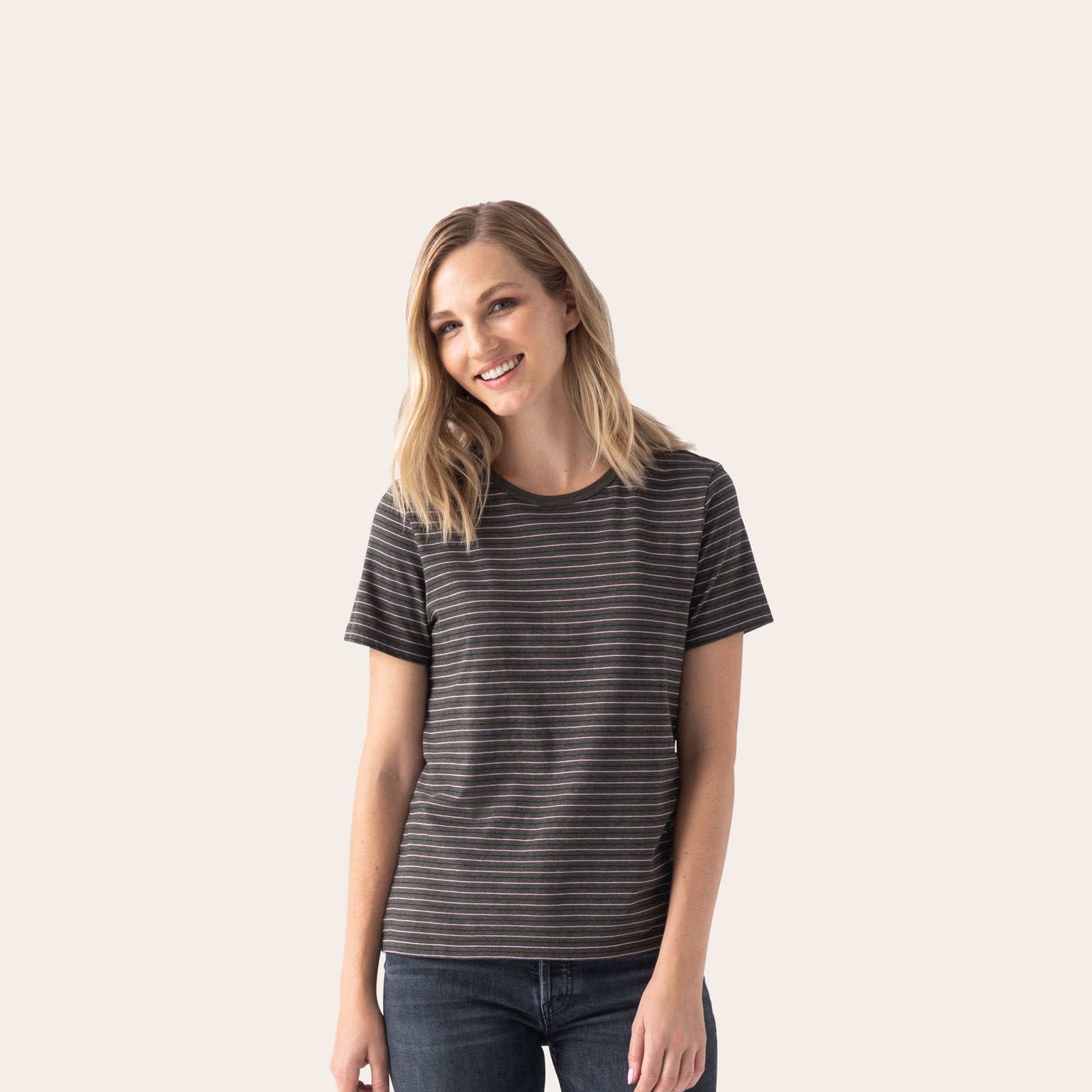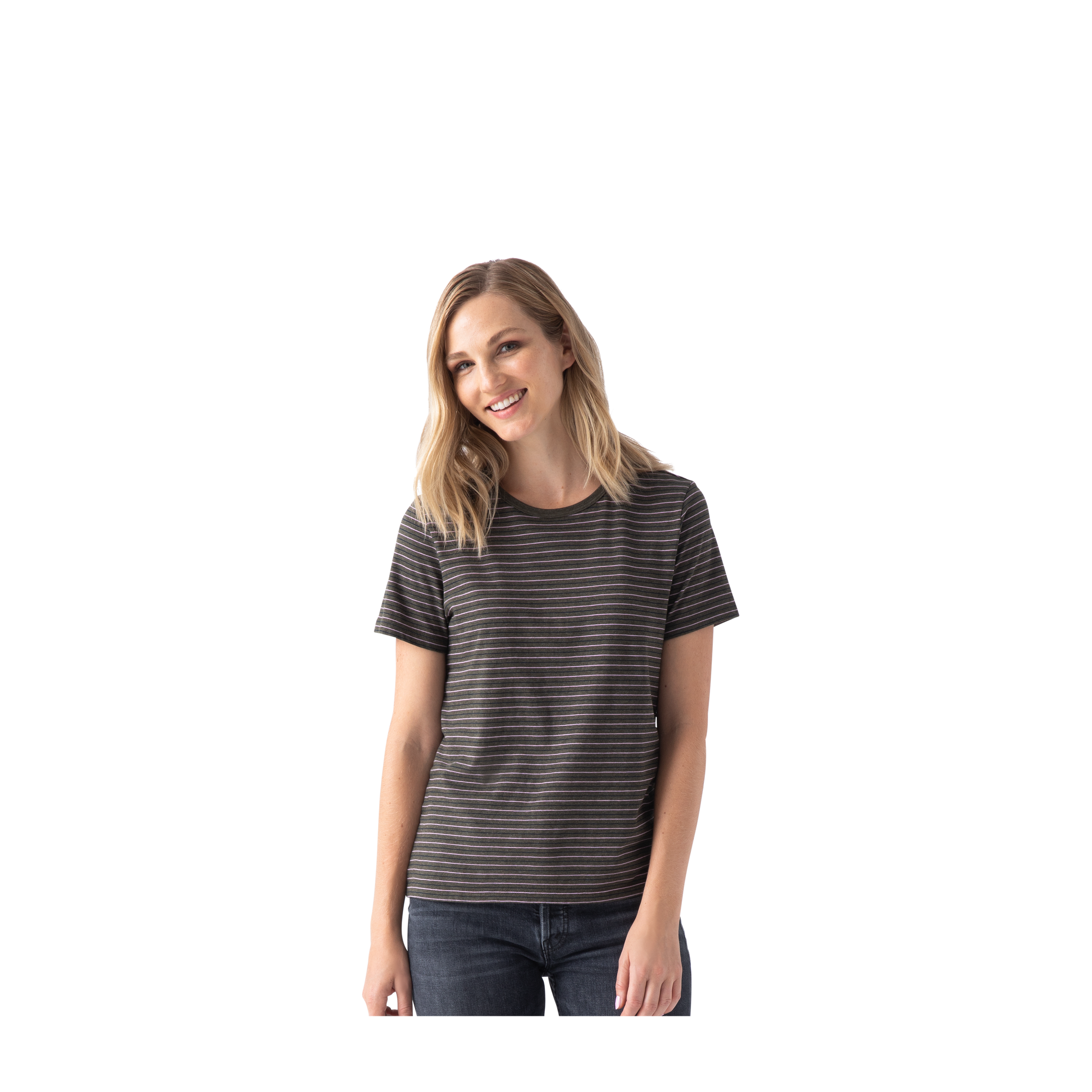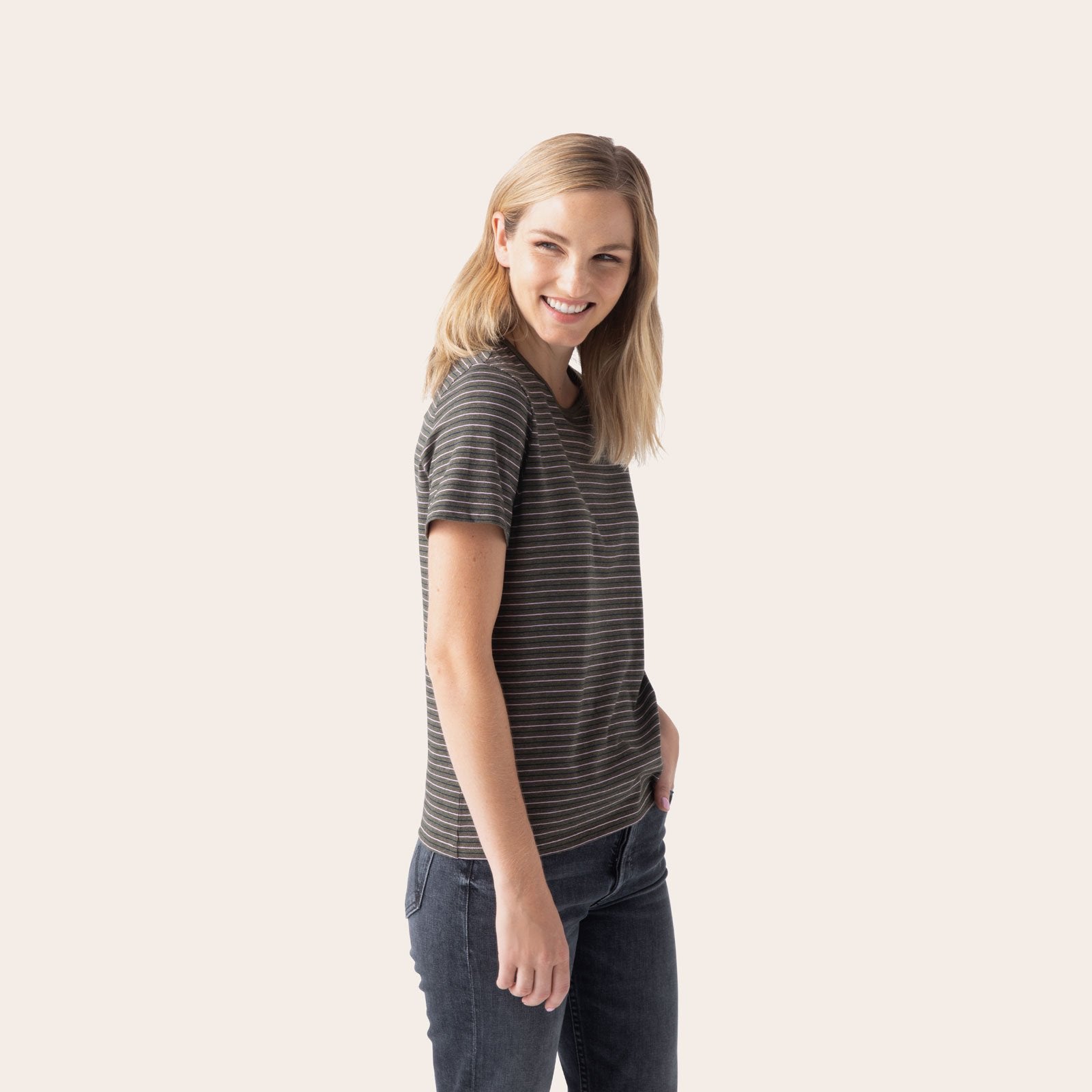 - • Olive Stripe T-Shirt: Model is 5'8, wearing Small~