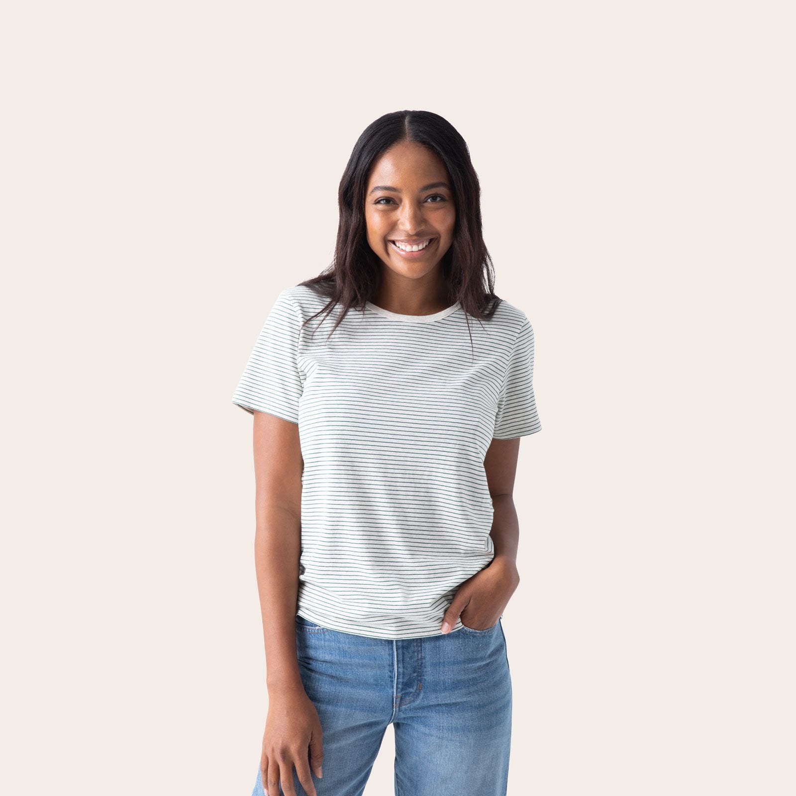 - • Pine Stripe T-Shirt: Model is 5'10, wearing Medium~