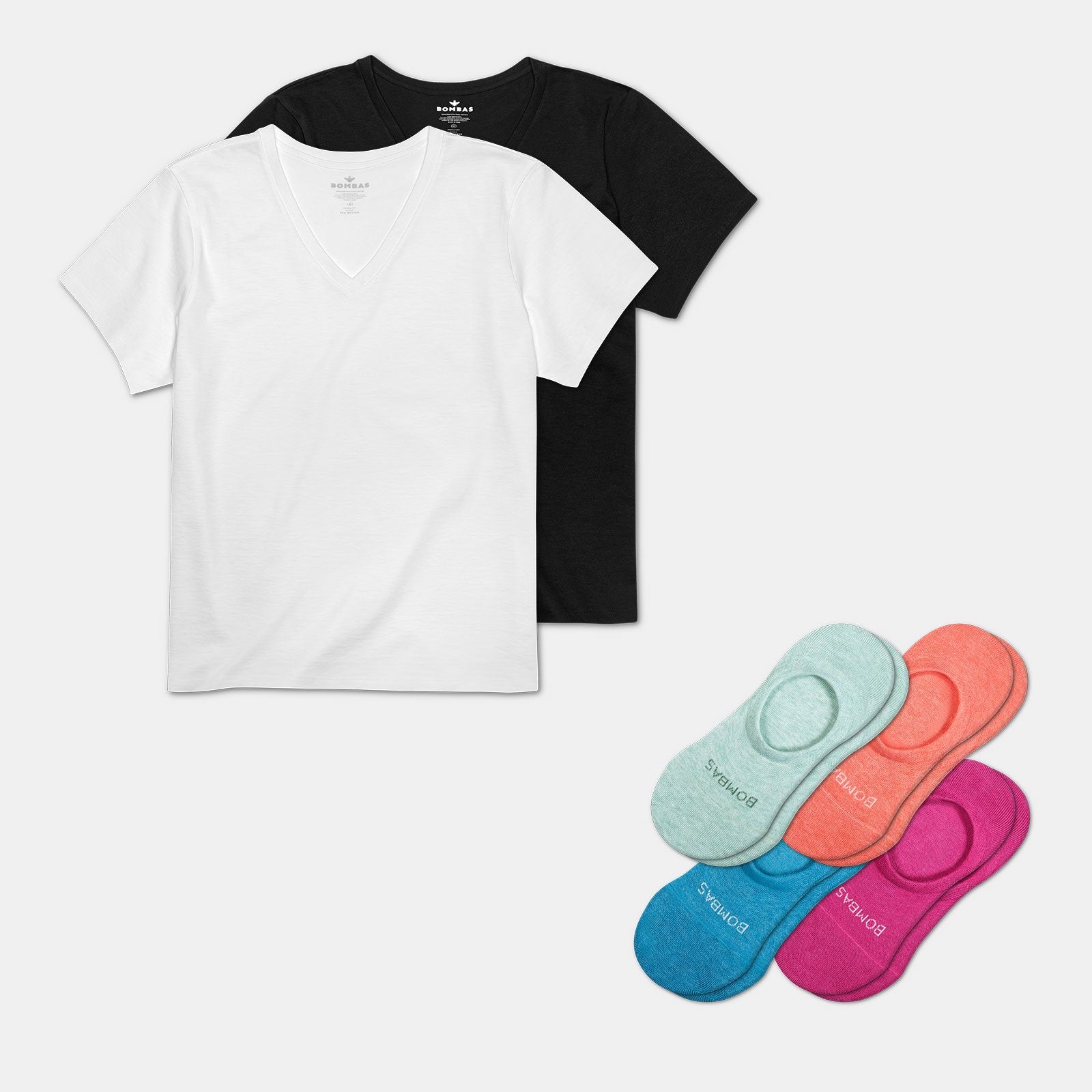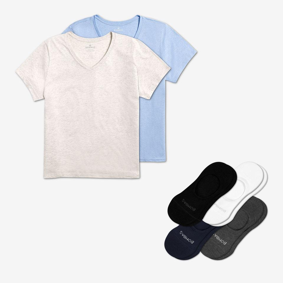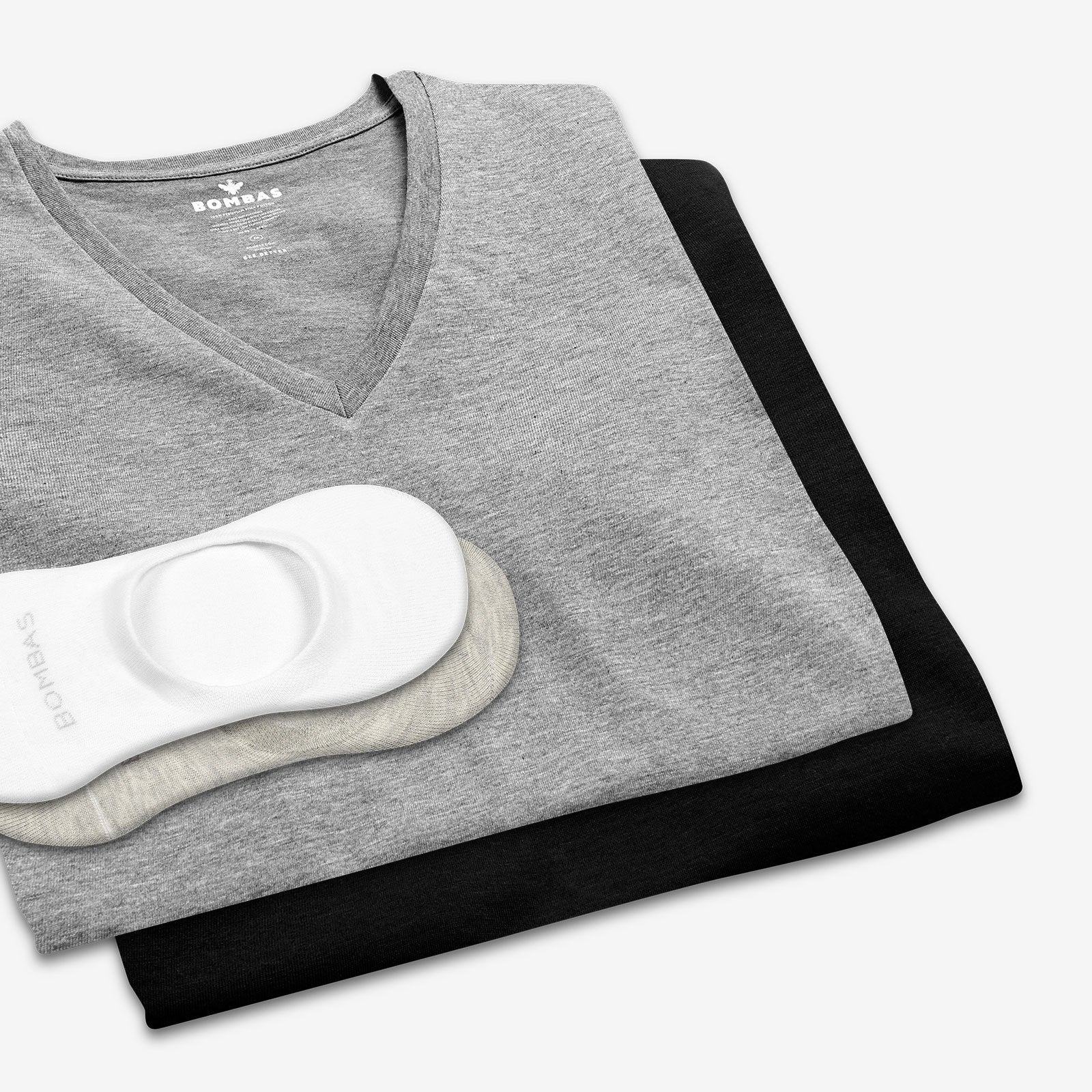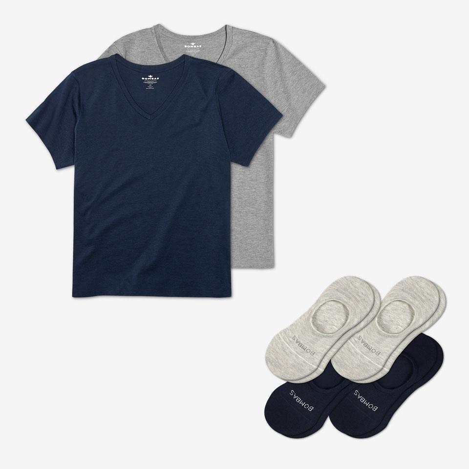 Two different kinds of thoughtfully designed Bombas products in one pack. Prepare for your daily comfort levels to go way, way up. And for each sock and shirt purchased, one will be donated to someone in need. One purchased = one donated, always and forever.